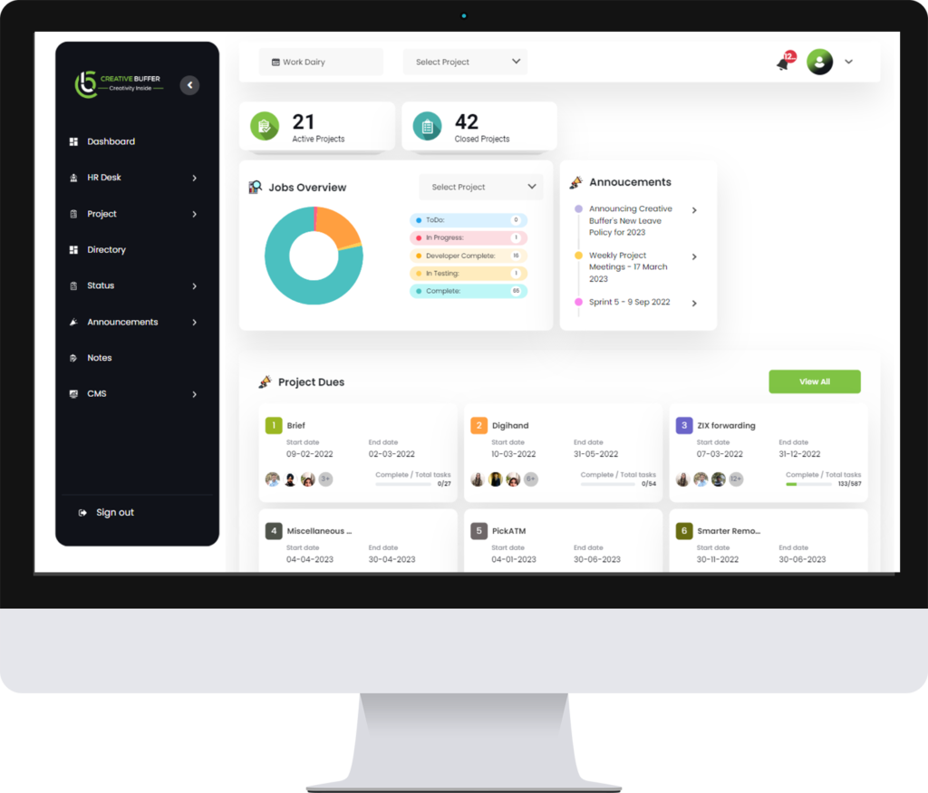 Business Management Solution is an all-in-one tool designed to streamline and optimize business operations. This comprehensive platform offers a wide range of features, including employee management, project and task assignments, HR management (covering attendance, payroll, and taxes), and sales management (tracking leads, prospects, and client data). Equipped with a detailed work diary, this solution allows organizations to monitor and record every aspect of their operations. The platform supports various user roles such as Super Admin, HR, Project Manager, and Employees, each with tailored access and functionalities to ensure efficient business management.