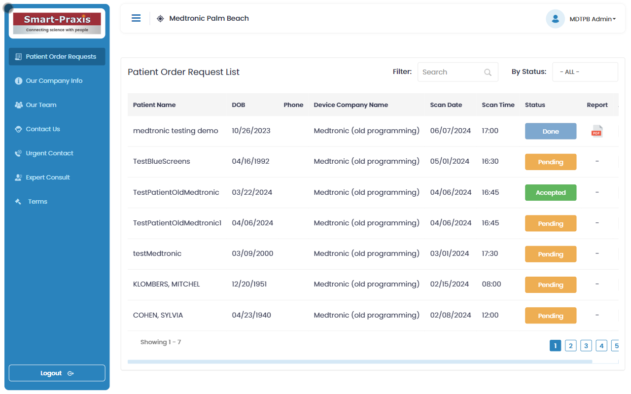 As a Device Company Technician, log in to the portal to review the list of scheduled MRI appointments. Ensure that all necessary precautions and safety protocols are being followed before the scan.